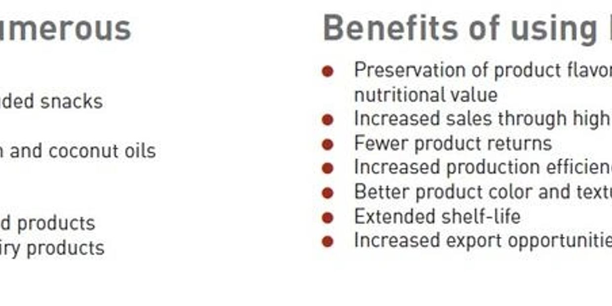 Manufacturers of snacks - potato chips, crackers, etc. - seek ways to improve shelf life. Improved shelf life allows manufacturers to extend their geographical reach as well as allow product to remain in stores and consumer's homes longer.